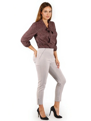 Spodnie damskie, szare dopasowane spodnie rybaczki z ozdobnymi zamkami, duże rozmiary 35355