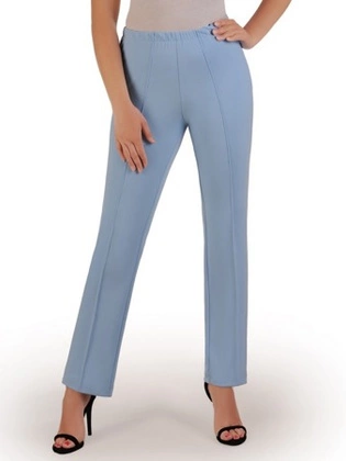 Spodnie damskie, niebieskie, dzianinowe, proste spodnie z przeszyciami i gumą w pasie, duże rozmiary 26042