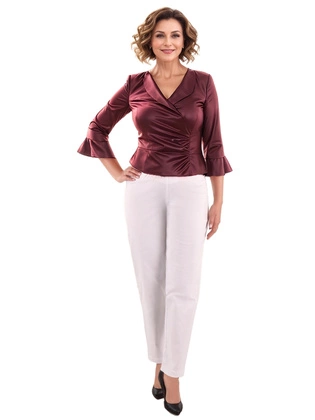 - Dopasowanie do sylwetki – białe spodnie mogą pięknie podkreślać figurę, ale ważne jest, aby dobrać fason, który będzie dopasowany do sylwetki. Cygaretki sprawdzą się u osób o szczupłych nogach, a szerokie nogawki doskonale wyrównują proporcje w przypadku szerszych bioder.