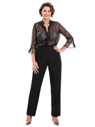 Spodnie damskie, czarne, eleganckie, materiałowe spodnie w kant z kieszeniami 36676