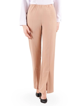 Spodnie damskie z szerokimi nogawkami, gumką w pasie i ozdobnymi rozcięciami 37511