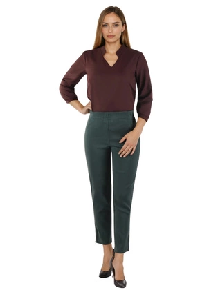 Spodnie damskie, zielone proste spodnie z gumką w pasie, tylnymi kieszeniami, duże rozmiary 34867