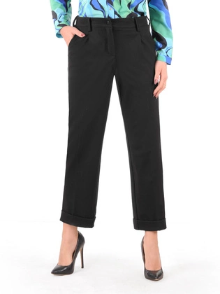 Spodnie damskie, czarne, eleganckie, materiałowe spodnie w kant z kieszeniami 36676