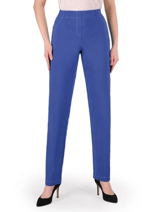 Spodnie, niebieskie, dopasowane spodnie damskie z gumką w pasie i przednimi kieszeniami, duże rozmiary 34893
