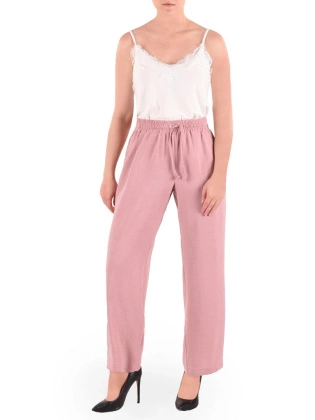 Różowe spodnie damskie z wiskozą – modne spodnie z gumką i kieszeniami, idealne na lato 40128