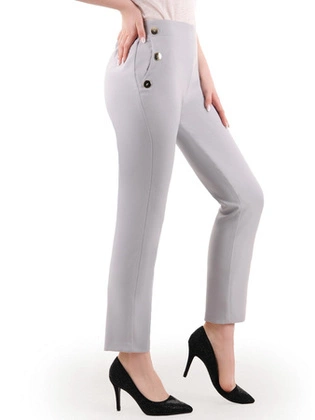Spodnie damskie, szare, proste spodnie z wiskozy na gumce z ozdobnymi guzikami przy kieszeniach, duże rozmiary 35404