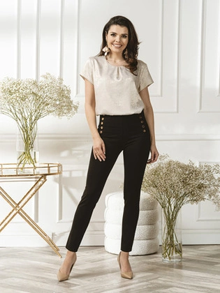 Spodnie damskie, dopasowane, dzianinowe, czarne elastyczne legginsy z ozdobnymi guzikami 32999