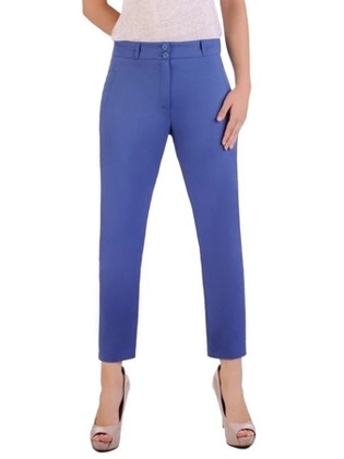 Spodnie damskie, dopasowane, chabrowe rybaczki z gumką w pasie, duże rozmiary 35212