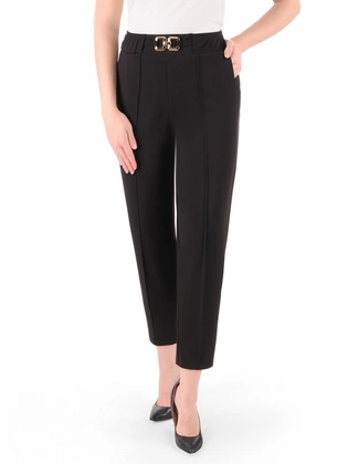Spodnie materiałowe, czarne spodnie damskie z ozdobnym przeszyciem, duże rozmiary 38840