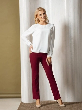 Spodnie damskie z szerokimi nogawkami, bordowe spodnie materiałowe 34226