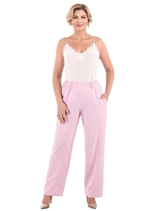 Różowe spodnie damskie z wiskozą – modne spodnie z gumką i kieszeniami, idealne na lato 40128