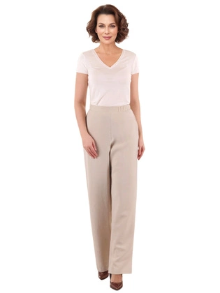 Spodnie szerokie, beżowe spodnie damskie plus size z domieszką lnu 38369