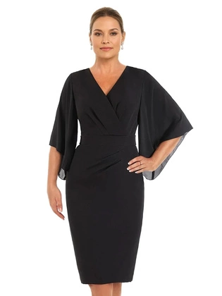 Sukienka z rozszerzanymi rękawami, czarna kreacja wyszczuplająca 19757