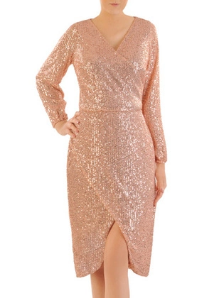 Elegancka sukienka tulipanowa w złote cekiny 35040