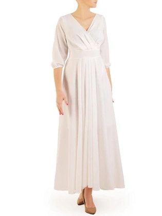 Biała sukienka maxi z szyfonu, kreacja z kopertowym dekoltem 31158