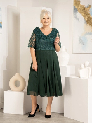 Elegancka, wyszczuplająca sukienka z tkaniny i koronki 32597