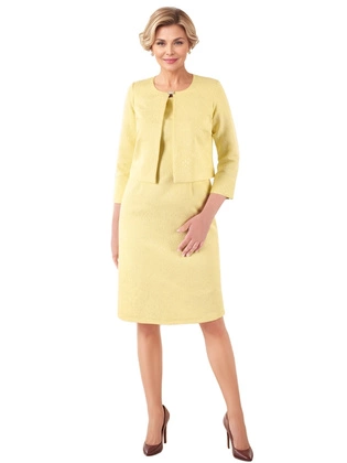 Klasyczny komplet damski z żakardowej tkaniny – elegancka sukienka z prostym żakietem na wesele i komunię 39879