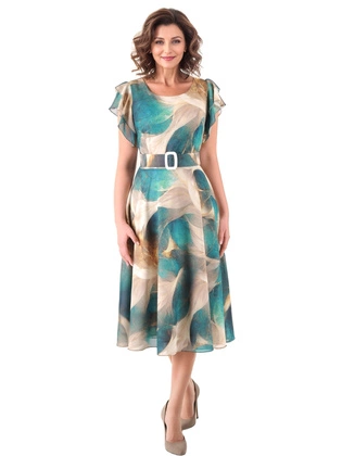 Rozkloszowana sukienka koktajlowa z paskiem w wiosennej kolorystyce – elegancka propozycja na przyjęcia, wesela i rodzinne uroczystości 39625