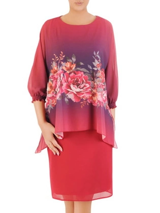 Luźna sukienka z szyfonową narzutką maskującą niedoskonałości 31991