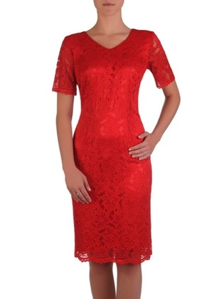 Modna sukienka z koronki 16914, czerwona kreacja na wesele.