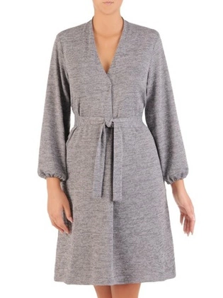Rozkloszowana sukienka z dzianiny, kreacja z gumkami na rękawach 27222