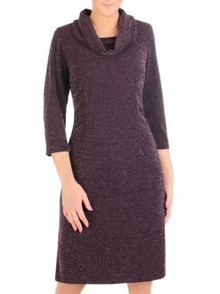 Śliwkowa, połyskująca sukienka damska z kominem 32063