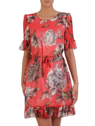 Sukienka w kwiaty z ozdobną falbaną po skosie 33601