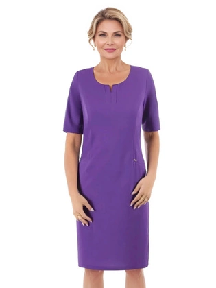 Fioletowa sukienka z modnym dekoltem, klasyczna kreacja wiosenna 37969