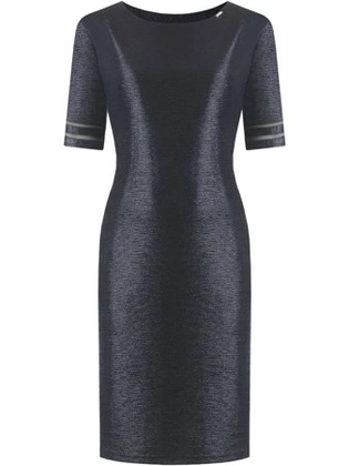 Nowoczesna sukienka z wycięciami na ramionach 18563, kreacja z wytłaczanej dzianiny.