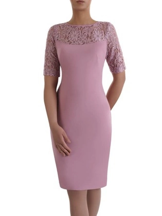 Klasyczna sukienka z koronkowym karczkiem 15878, wrzosowa kreacja na wesele.