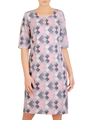 Sukienka z tkaniny, prosta kreacja w geometrycznym wzorze 31875