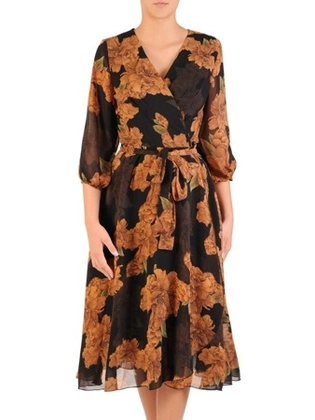 Wyjściowa, zwiewna sukienka w kwiaty z kopertowym dekoltem 30395