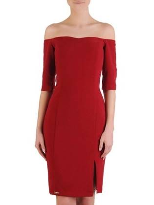 Prosta czerwona sukienka z falbankami na rękawach 30823