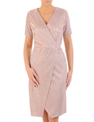 Wieczorowa sukienka kopertowa, kreacja z połyskującej dzianiny 32995