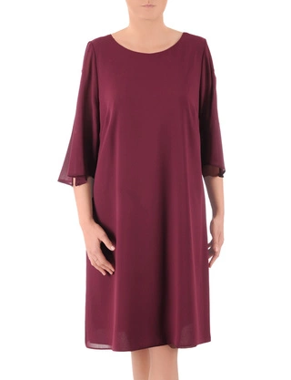 Trapezowa sukienka z szyfonu, kreacja z perełkami na rękawach 32646