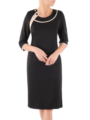 Nowoczesna sukienka z kontrastowym, asymetrycznym kołnierzem 21978