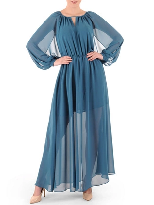 Długa, rozkloszowana sukienka wizytowa, zwiewna kreacja na wiosnę 37872