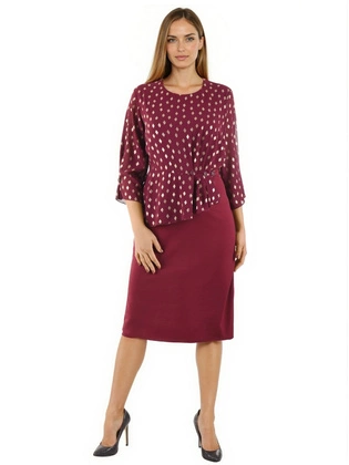 Elegancka sukienka midi bordowa ze złotymi akcentami – elegancka kreacja z rękawem 3/4 40392