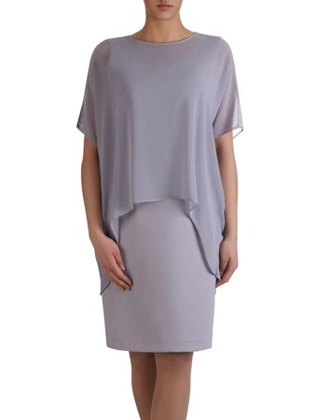 Sukienka wyszczuplająca 2w1, prosta kreacja z luźną, szyfonową narzutką 15384