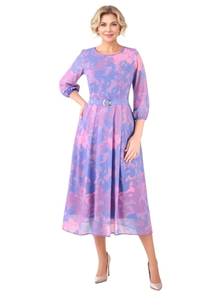 Rozkloszowana sukienka midi na wesele – elegancki, kobiecy fason z oryginalnym wzorem 40061