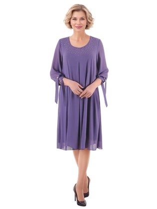 Liliowa sukienka z szerokimi, koronkowymi rękawami 20009