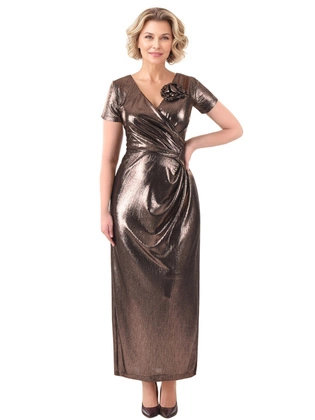 Sukienka na wesele, długa kreacja w eleganckim fasonie z ozdobnym kwiatem 39582