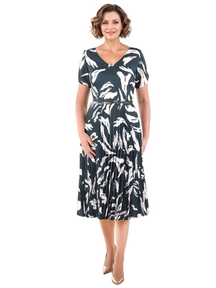 Rozkloszowana sukienka midi na wesele – elegancki, kobiecy fason z oryginalnym wzorem 40061