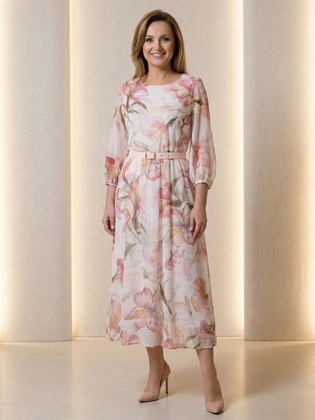 Sukienka na wesele, komunię elegancka kreacja w wyszczuplającym, luźnym fasonie 39793