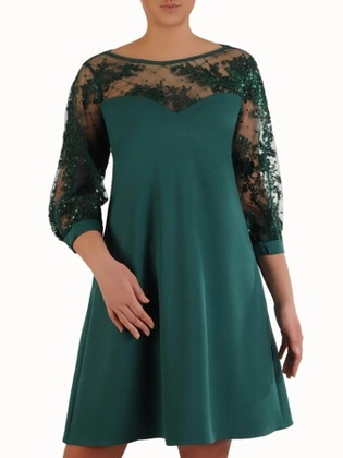 Trapezowa sukienka z koronkowym karczkiem i rękawami 24512