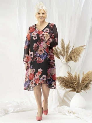 Sukienka z szyfonu, luźna kreacja w kwiaty 25626
