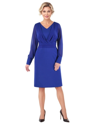 Sukienka z dwuwarstwowym topem 14728, kopertowa kreacja wyszczuplająca.