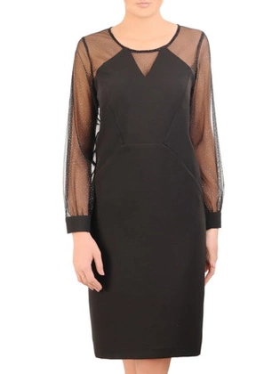 Wizytowa sukienka z ozdobnym karczkiem i rękawami 31658