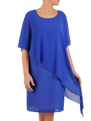 Chabrowa sukienka wyszczuplająca, kreacja z asymetryczną narzutką 31020