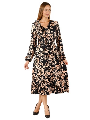 - Wybierz fason, który podkreśli Twoje atuty – na przykład sukienki maxi w kwiaty na wesele z falbanami dodają sylwetce lekkości, a modele z paskiem w talii pięknie eksponują kobiecą figurę.